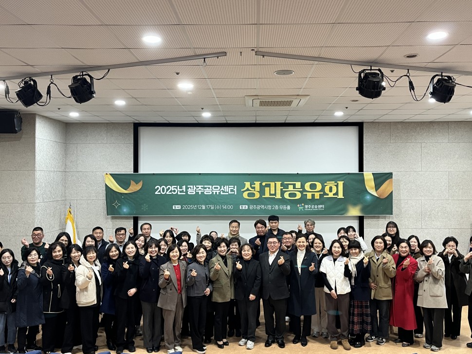 2025.12.17 2025년 광주공유센터 성과공유회가 광주시청 무등홀에서 오후2시부터 진행하였습니다. 이번 성과공유회는 2025년 한 해 동안 추진한 광주공유센터 운영 성과와 공유단체의 공유사업 추진 결과를 공유하기 위해 마련되었습니다. 식전 펜플룻 공연을 시작으로 광주도서관 참사에 대한 묵념을 진행한 후 본 행사로 이어졌습니다. 이후 공유문화 확산에 기여한 단체 및 개인을…