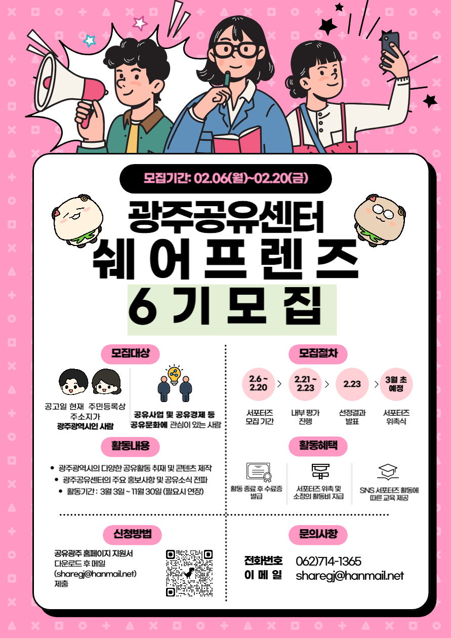 광주공유센터에서 공유문화 확산과 공유센터 홍보를 위해 서포터즈를 모집합니다.