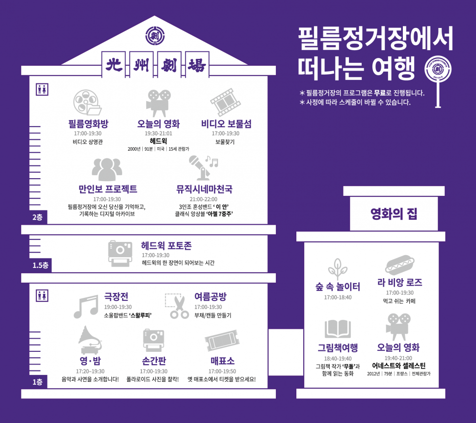 * 문화가 있는 날 수요일N 영화롭게 만원극장 <필름정거장>의 영화관람, 공연, 전시, 체험 프로그램은 모두 무료로 진행됩니다.
