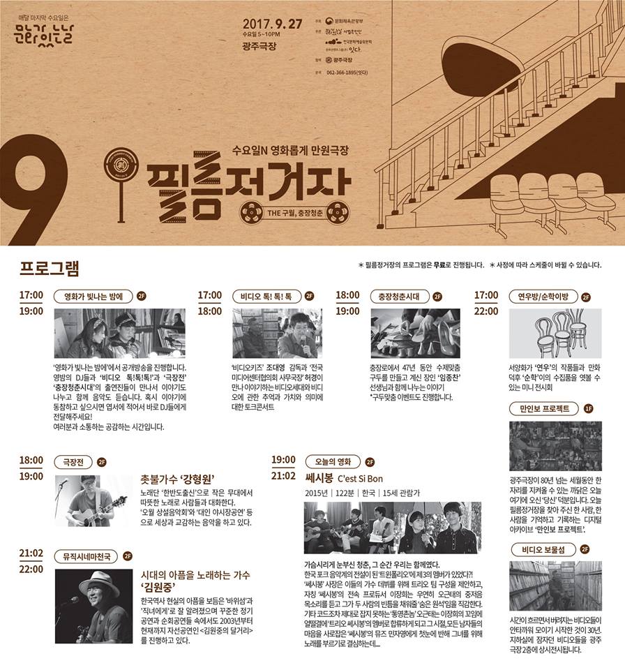 * 9월 27일(수) 오후 5시-10시, 광주극장